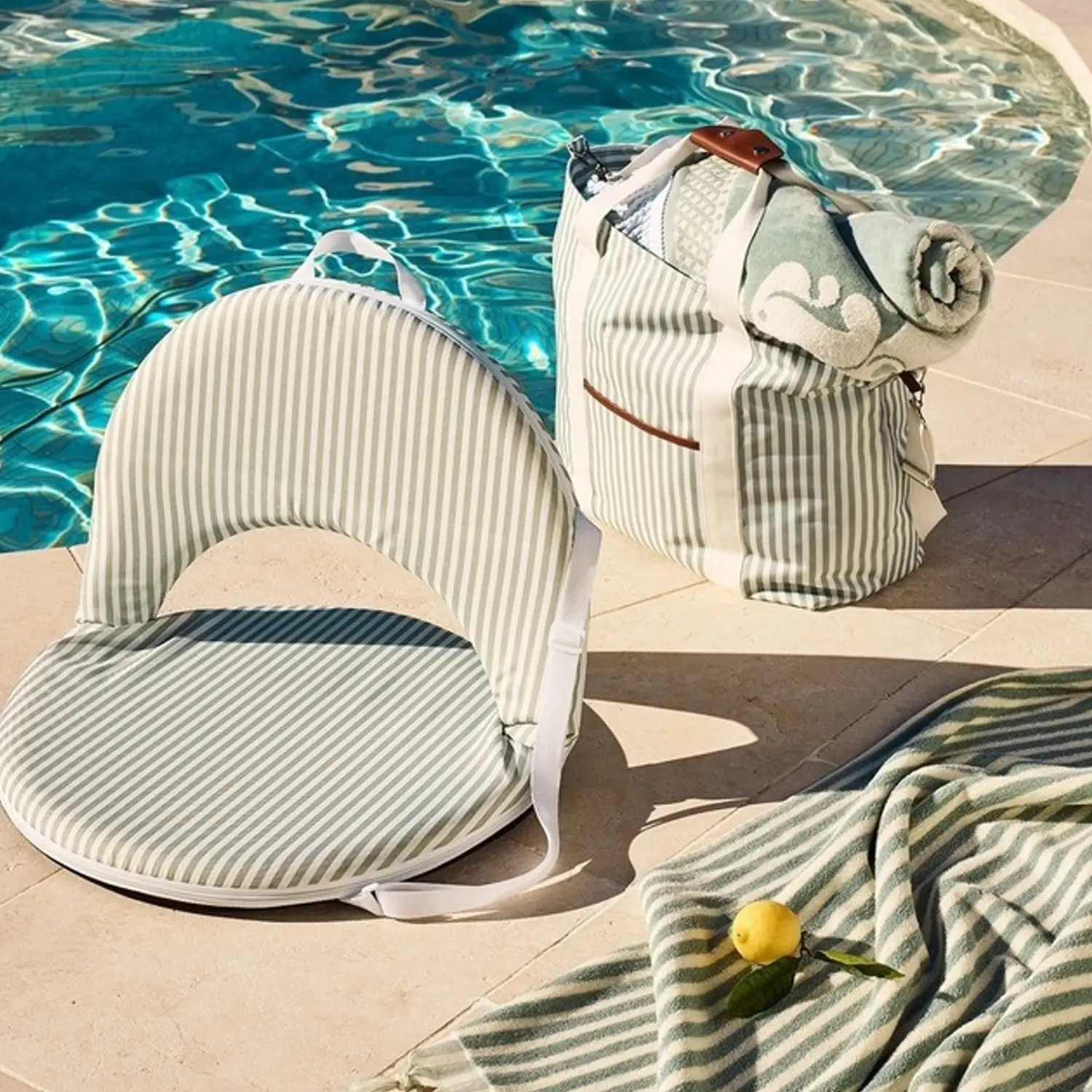 Immerse yourself in luxury and style with our Round Cushion Recliner in Marco Pinstripe. This chair is designed to be your ultimate beach companion, blending classic elegance with modern functionality. With multiple reclining positions, you can find the perfect angle for lounging or reading.