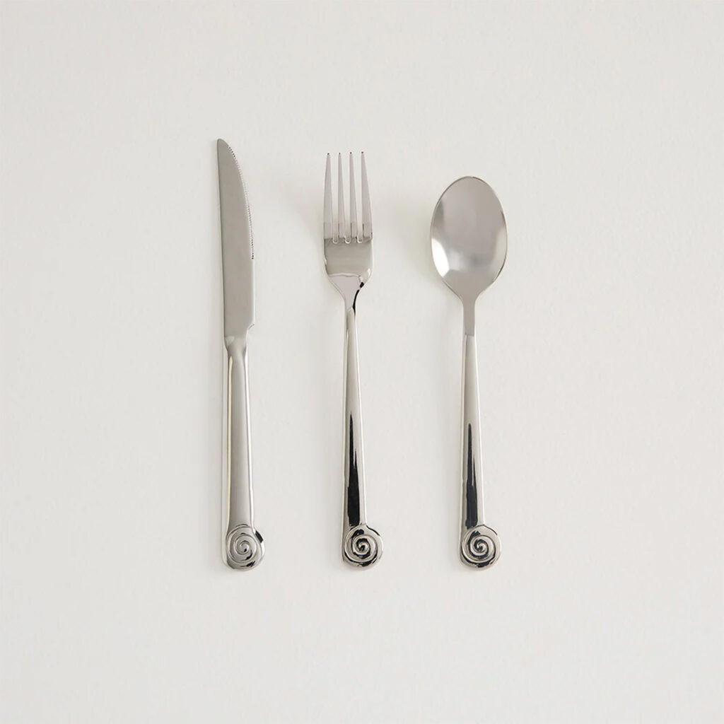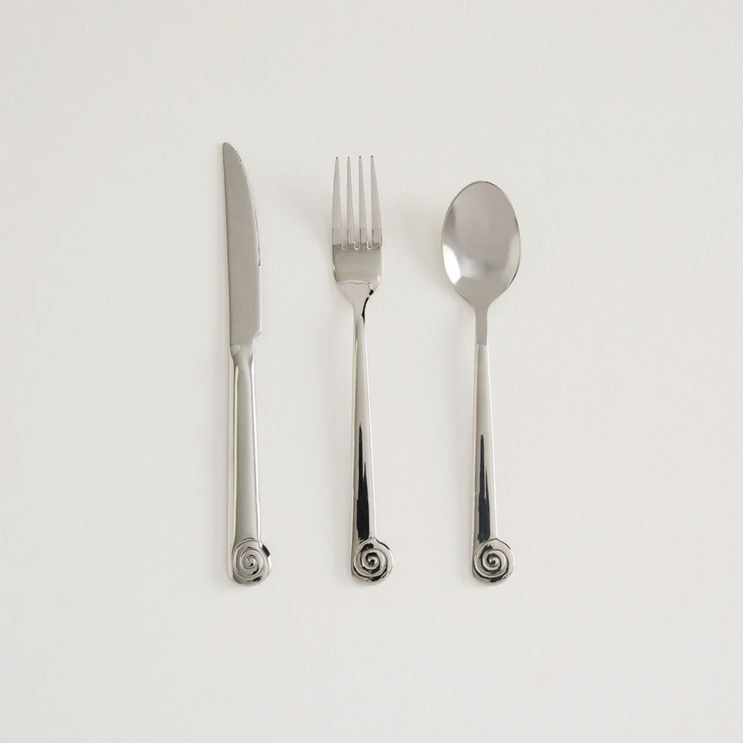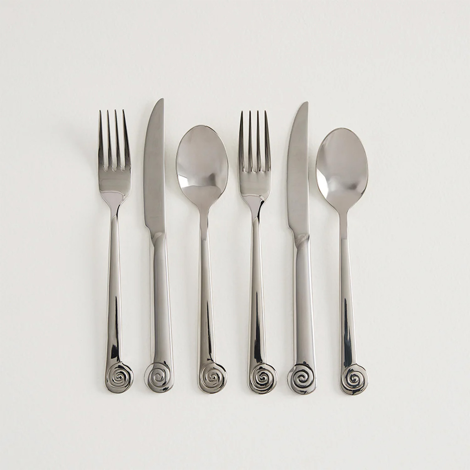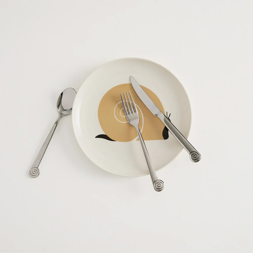 Table for two, please! Polish off every morsel with this two-person cutlery set that is an extraordinary pleasure for the fingers to embrace. Each piece is decorated with the elegant spiral of an escargot shell; the only question now is. Who will be your guest?