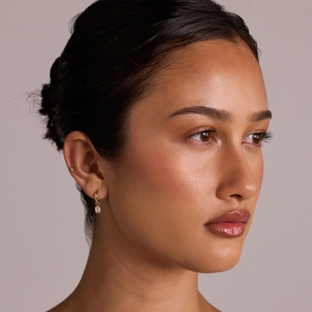 An emerald cut laboratory-grown diamond in a sleek bezel setting, offering 0.30 carat total weight. Set in 10-karat yellow gold, this single earring charm brings bold elegance to your stack and is designed to slide onto hoops or huggies for effortless styling.