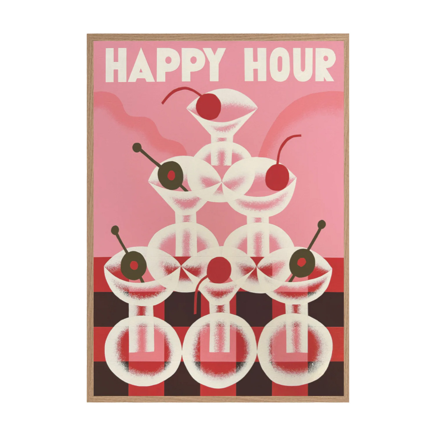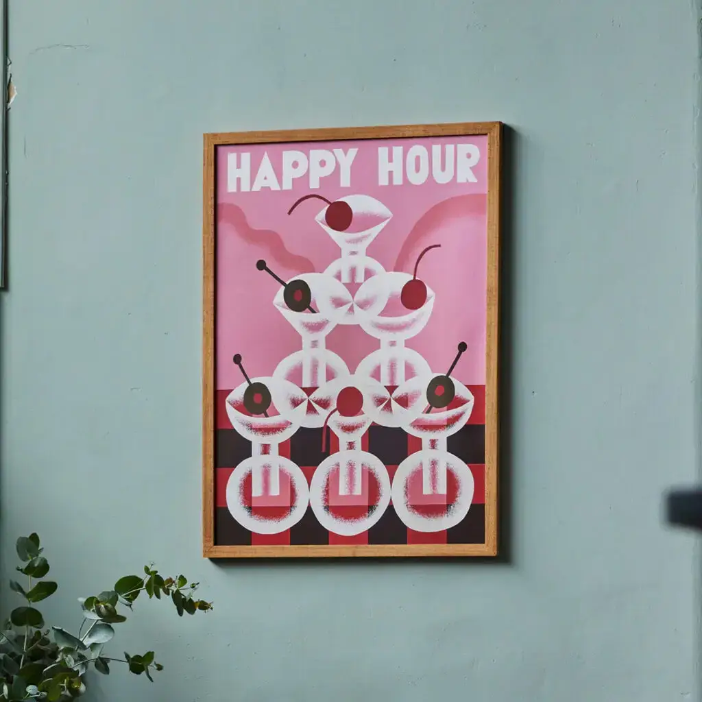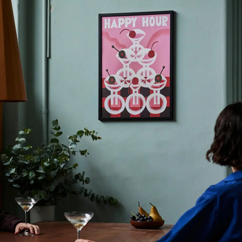 Painted by Josh Stover, an artist and sign painter based in Virginia, this piece is a playful nod to vintage cocktail culture – a toast to good company and the joy of calling it a day. With bold pinks, rich reds, and crisp graphic shapes, Josh’s signature style draws inspiration from antique and vintage objects collected in his home, reflecting a love for mid-century design and a knack for elevating the everyday.