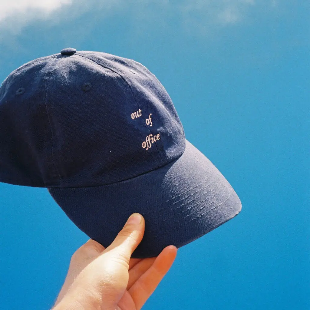 A souvenir of cherished time out away from the virtual world. The best-selling ‘Out of Office’ cap in Navy + Cream is the perfect everyday cap whether you are out of office or dreaming to be.