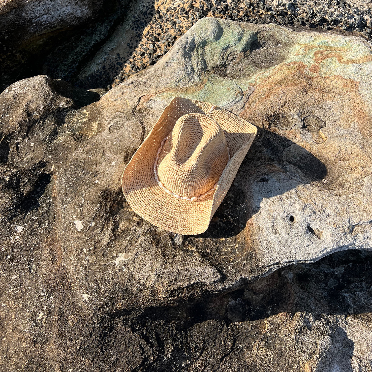 Meet the all-new Suki Cowboy Hat, where rodeo ready meets coastal cowgirl. Handwoven from natural raffia straw and adorned with custom seashell beading.